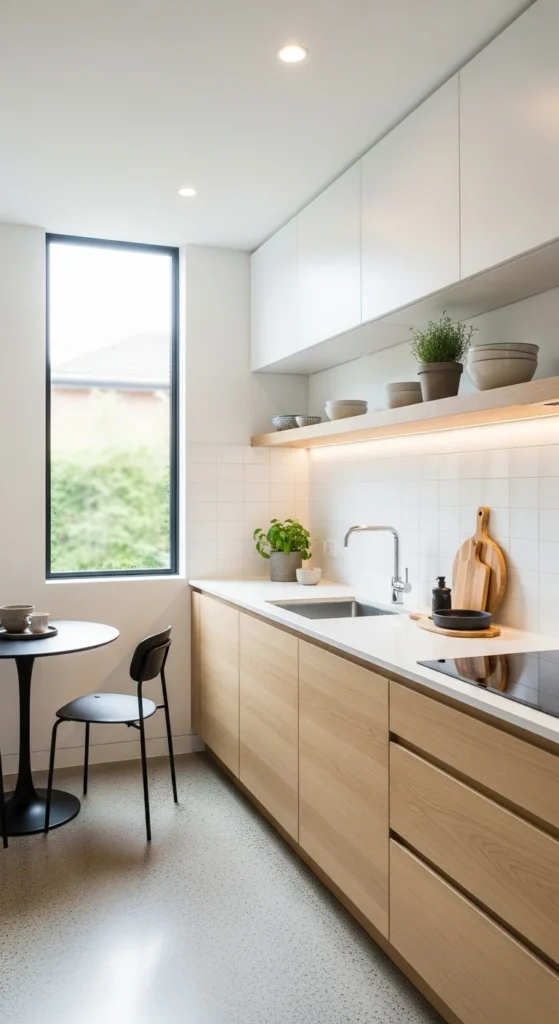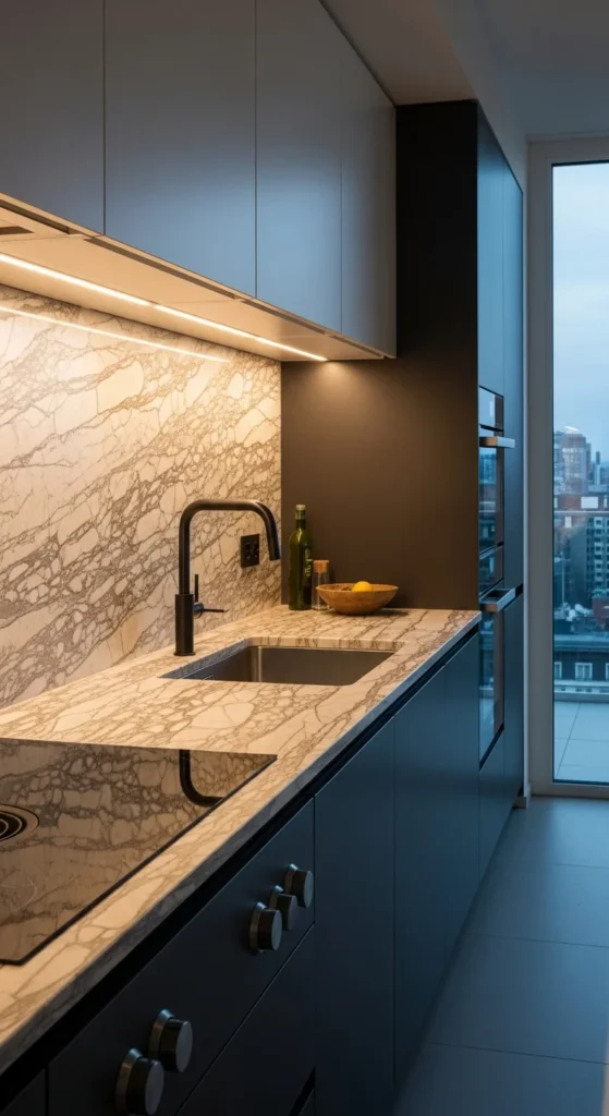 Using the same material for backsplash and counter reduces visual breaks. This makes kitchens feel larger. If slabs cost too much, large-format tiles create a similar effect. Keep grout lines minimal. Light colors work best for this approach.
