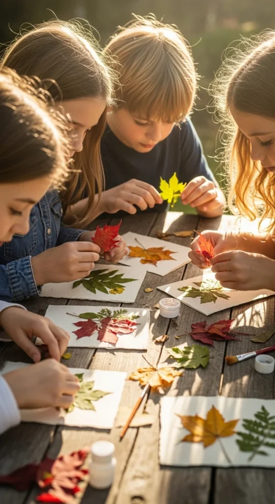 Leaf rubbings turn a simple walk into an art session with almost no setup. Gather leaves in different sizes and textures, then place one under a sheet of paper and rub over it gently with the side of a crayon. The veins and edges appear little by little, which makes the activity feel almost magical for kids. This is a great craft when you want something calm and low-mess. It also helps children notice differences between leaf shapes, sizes, and surfaces. Try using green, brown, yellow, or orange crayons for a nature-themed result, or let kids use wild color choices just for fun. If you want more variety, label the leaves after the rubbing or group them by tree type, size, or shape. A good low-cost tip is to save used crayons and peel the wrappers ahead of time so they are ready for rubbing. This project is very easy to take outdoors because all you need is paper, crayons, and a flat surface like a bench, clipboard, or picnic table. It works well for school-age children but younger kids can enjoy it too with a little help holding the paper steady.