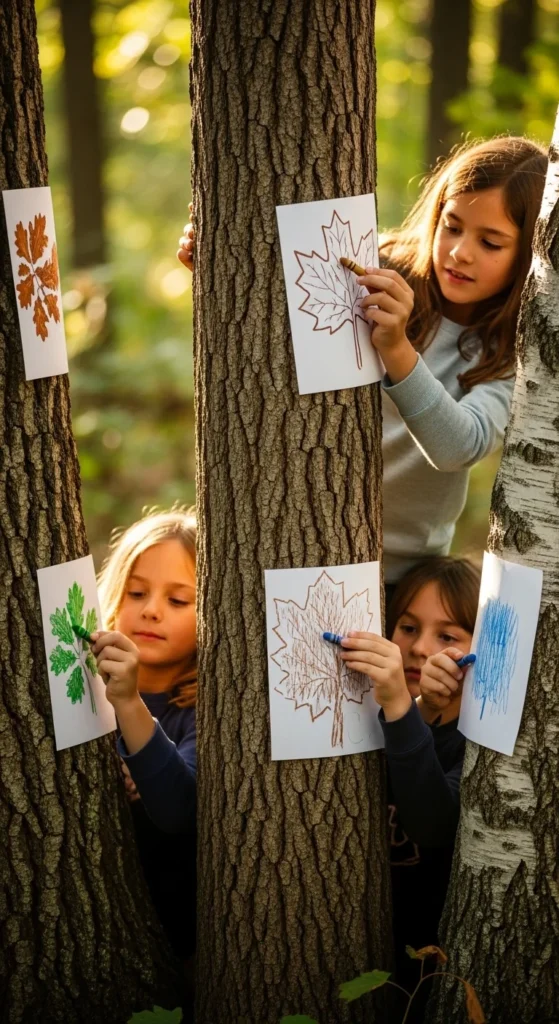 Bark rubbings are a simple way to help kids notice that every tree feels different. Hold a sheet of paper against a tree trunk, then rub over it gently with the side of a crayon. The rough pattern appears quickly and gives children a chance to compare one tree to another. This makes the craft feel like a discovery activity as much as an art project. It is a smart low-cost option because it uses almost no supplies and works best outdoors where the trees already are. To make it more interesting, collect rubbings from different trunks and compare the patterns later. Kids can label them by location, bark roughness, or tree size if they want more detail. A good tip is to use masking tape to hold the paper in place on windy days. Bark rubbings are especially useful when you want a calm outdoor activity that still feels hands-on. They work well in parks, forests, schoolyards, and gardens with mature trees. The finished papers can also be cut up later for collages or mixed-media nature journals.