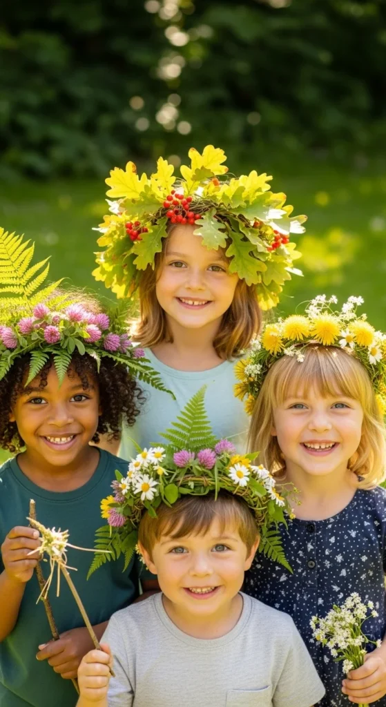 Nature crowns are a fun craft because they turn collected outdoor materials into something kids can wear right away. Start with a strip of cardboard, thick paper, or flexible card cut to fit around the head. Then let children decorate it with leaves, grass plumes, flower heads, clover, and tiny twigs using tape or glue. The final result can feel royal, fairy-like, woodland-inspired, or completely silly depending on what they collect. This is a great choice for a birthday party, garden playdate, or outdoor story time because the crowns become part of the pretend play after the craft is done. A budget-friendly tip is to use old cereal boxes cut into strips for the crown base, then cover the outside with leaves and flowers so the cardboard hardly shows. If flowers are limited, focus on layered leaves in different shapes and colors. Kids often enjoy collecting the materials as much as making the craft itself, so turn the prep into a mini scavenger hunt. Once finished, the crowns can be worn for photos, garden games, or a “forest parade” around the yard.