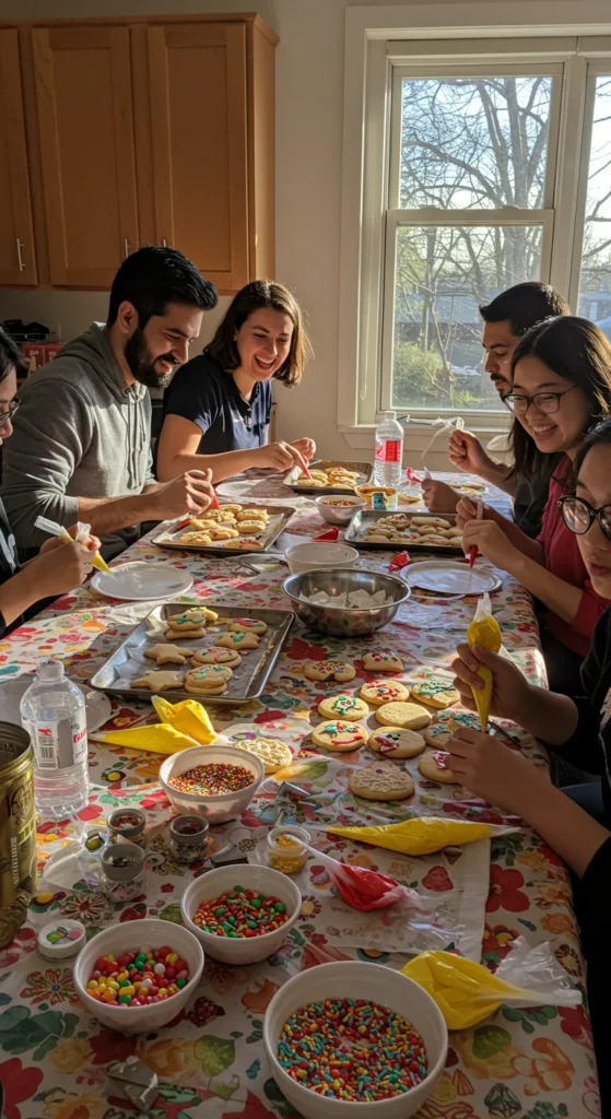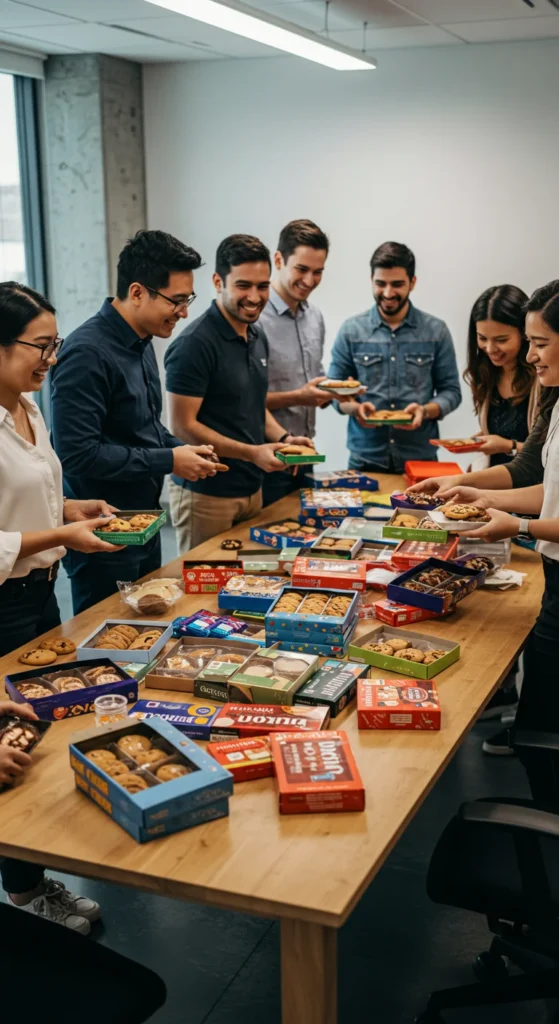 A cookie decorating station is always a hit. Bake or buy plain cookies and set out icing, sprinkles, and edible glitter. Everyone can decorate their own and take a few home. Keep paper boxes or zip bags handy. It’s sweet, creative, and easy to organize right in the break room.