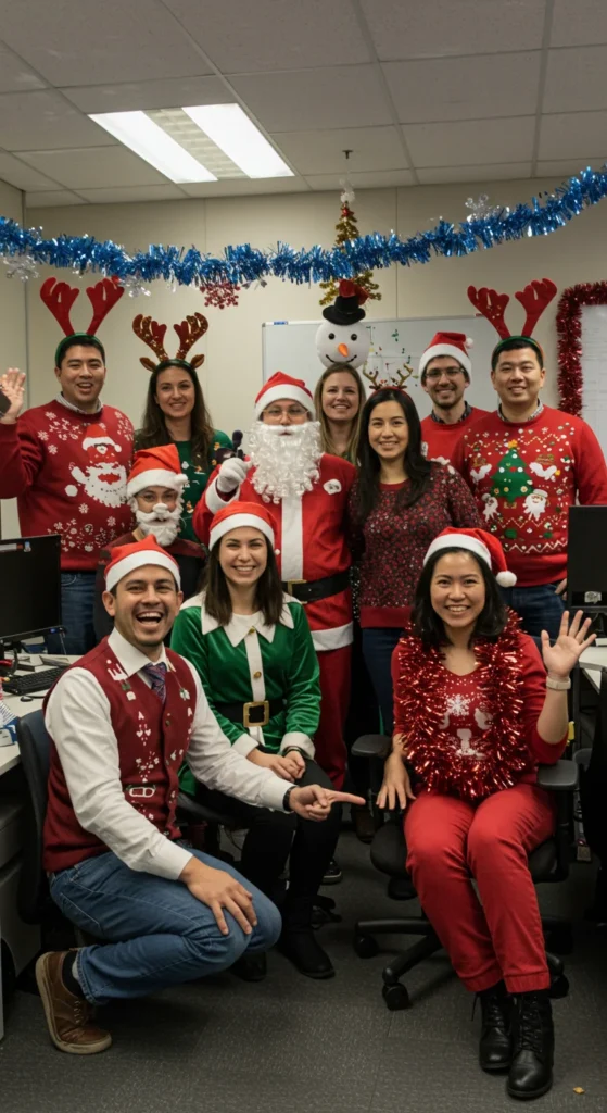 Set a theme—maybe “Santa’s Workshop” or “Winter Pajamas.” Encourage costumes and hold a quick parade through the office. It breaks routine and fills the day with laughter. Add a small award for “Most Creative Outfit.”