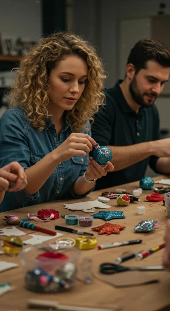 Instead of store-bought gifts, create a DIY ornament swap. Provide plain ornaments and craft supplies, and let everyone design one to exchange. It’s personal, easy, and looks great on any tree.