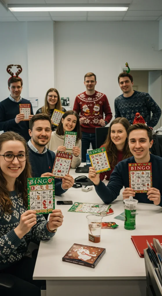 Print holiday bingo cards filled with festive icons or office-themed jokes. Use candy as markers. Play during lunch or between tasks for a quick morale boost.