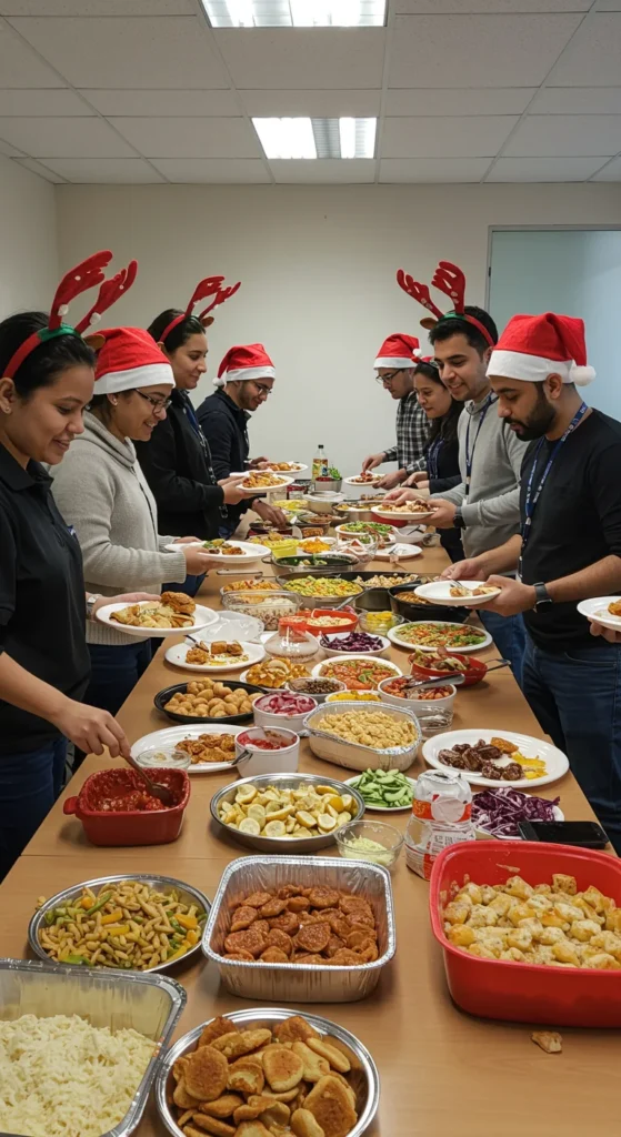 Organize a holiday potluck where everyone brings a favorite dish. Create a signup sheet to avoid duplicates and include vegetarian options. Decorate the table with simple garlands and paper snowflakes. It’s a fun way to share food, stories, and traditions without needing catering. Encourage team members to label dishes and include a short note about why it’s special.