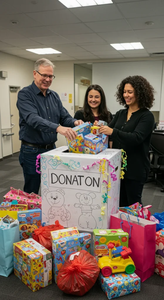 Give your celebration meaning with a charity drive. Collect toys, clothes, or food items for local shelters. Set up a festive donation area with bows and lights. Encourage participation by matching donations as a team. It adds heart to your party and reminds everyone what the season is really about.