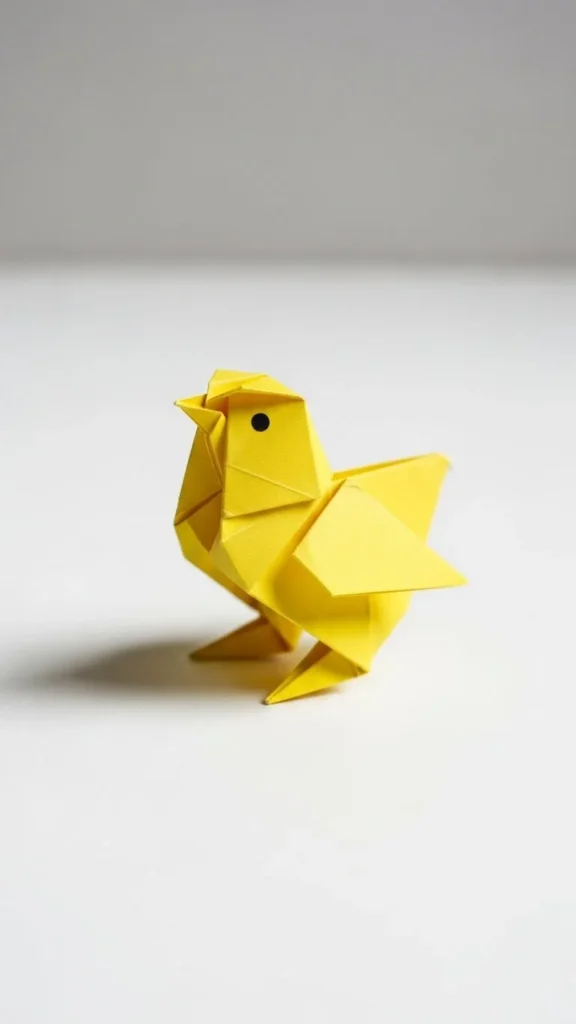 A chick is simple and cute. Fold a square into a small rounded body with one pointed edge for the beak. These chicks are perfect for spring decorations or Easter crafts. Kids can add eyes with a pen. Make several for a cheerful flock.