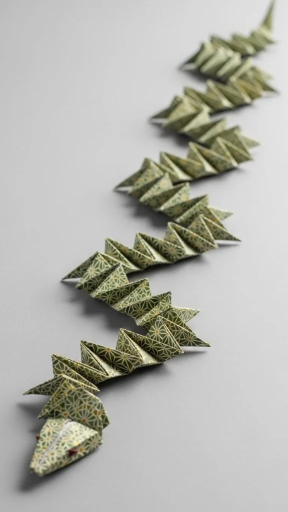 A snake uses accordion folds for its body. Use long strips of paper for a dramatic effect. Kids enjoy bending the body into curves. This is great for quick crafting because the steps are simple. Snakes display well on desks or board projects.