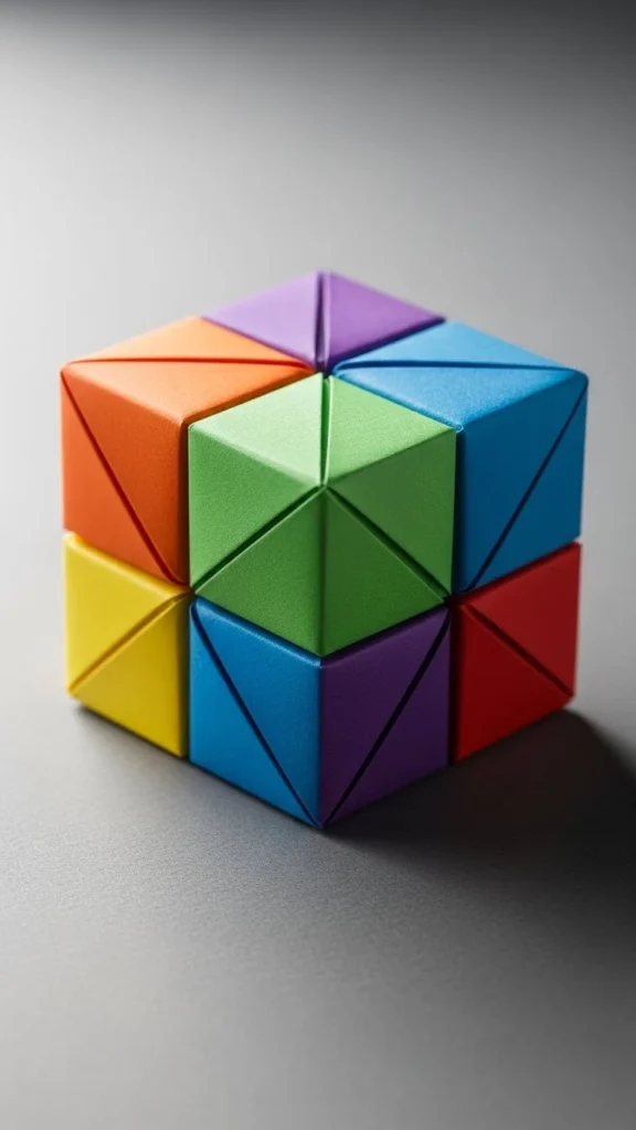A cube uses six identical parts that lock together. It teaches patience in a simple way. These cubes sit well on desks and can be stacked. Use bright paper for a playful look. They hold their shape without glue when folded correctly.