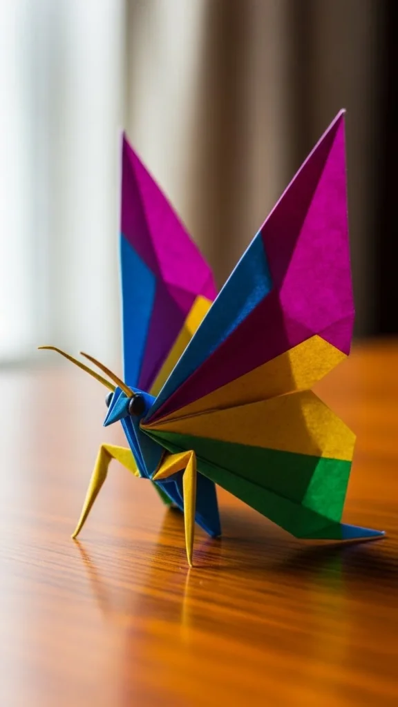 Butterflies are charming and simple. Fold a square sheet into angled wings and a narrow body. Use patterned paper for added personality. These butterflies attach nicely to walls, photo frames, or indoor plants. Fold several for a cluster effect. This project is quick and inviting for beginners.
