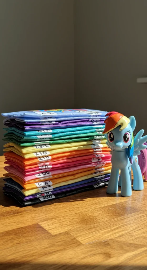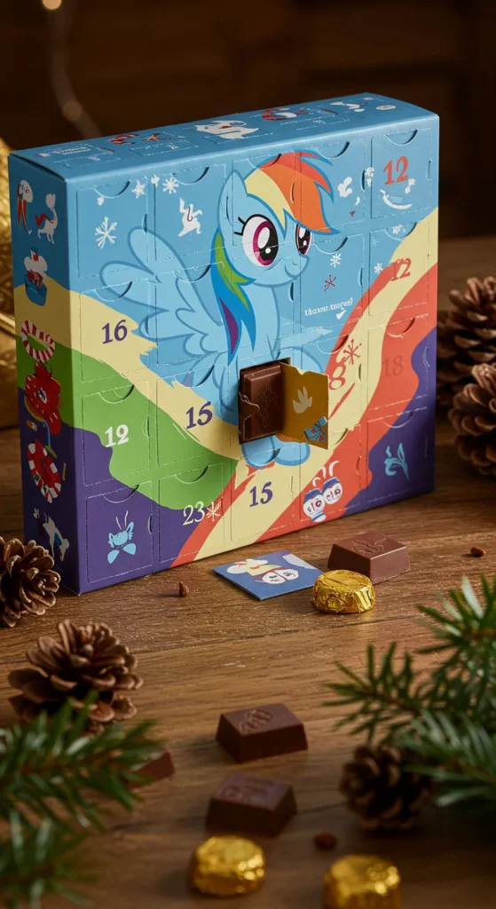 A story Advent calendar is simple yet magical. Wrap 25 books, short stories, or comics featuring Rainbow Dash and friends. Label them with numbers and place them in a basket. Each night, kids unwrap one and enjoy bedtime reading. Keep it budget-friendly by including library finds, thrifted books, or printed stories. Parents can also create custom story sheets with holiday themes. This calendar builds excitement and creates meaningful family reading time. Children love discovering new tales, and the rainbow theme adds brightness to the holiday season.