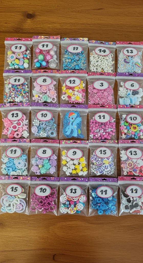 Craft supply calendars are perfect for creative kids. Fill each pouch with craft items like glitter, stickers, beads, or markers. By Christmas, kids have a collection to create their own Rainbow Dash crafts. To save money, divide bulk packs of supplies into small sets. Use envelopes, bags, or jars as containers. Add a new idea card each day with instructions for a simple project. This calendar encourages creativity while keeping the holiday fun alive.