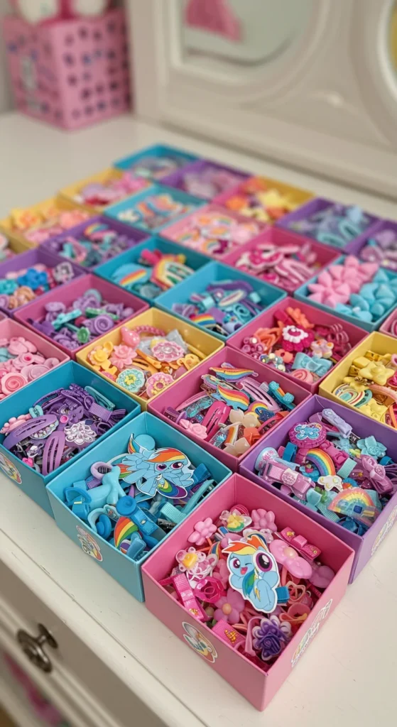 Hair accessory calendars are fun for kids who love dressing up. Place hairbands, clips, and bows into 25 little boxes. Decorate with Rainbow Dash stickers and colorful wrapping. You can find packs of inexpensive hair accessories and divide them up. Kids look forward to wearing a new piece every day. Store them in a clear container or display them on a vanity. By Christmas, they have a full collection of playful accessories to mix and match.