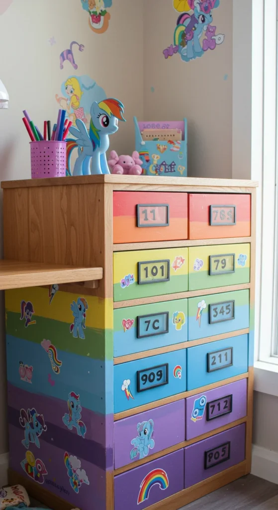 Cube calendars feel like mini drawers of magic. Build or buy a cube organizer with 25 drawers. Decorate each with rainbow paper and Rainbow Dash images. Fill drawers with candy, toys, or craft items. Kids love sliding open a drawer daily. To keep it affordable, repurpose cardboard organizers or shoeboxes cut into small sections. This calendar doubles as storage after the season ends.
