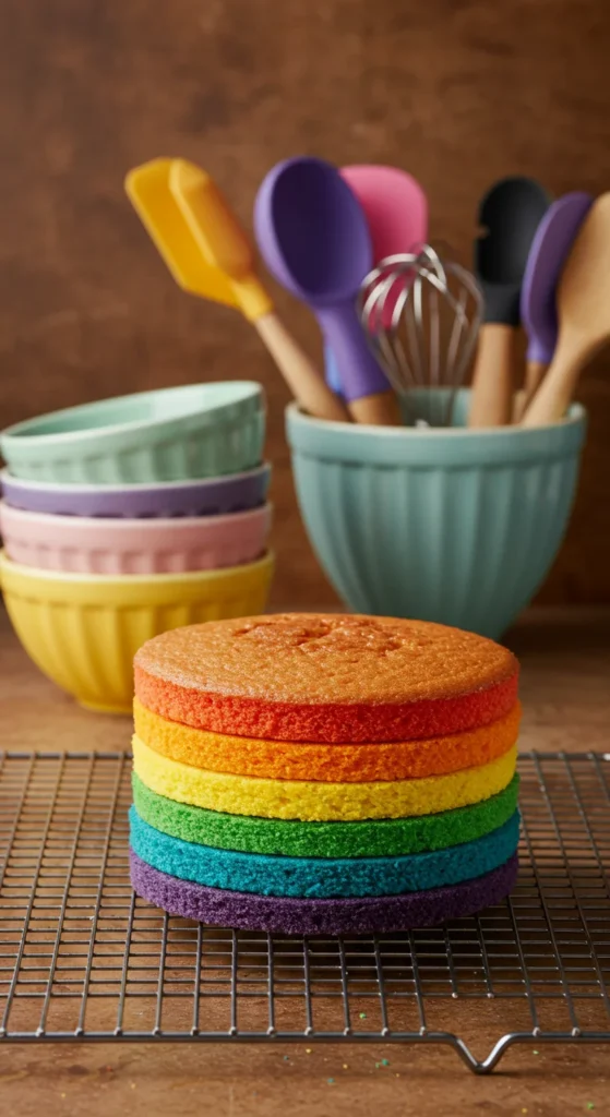 Now comes the fun part — creating the rainbow magic inside your cake!