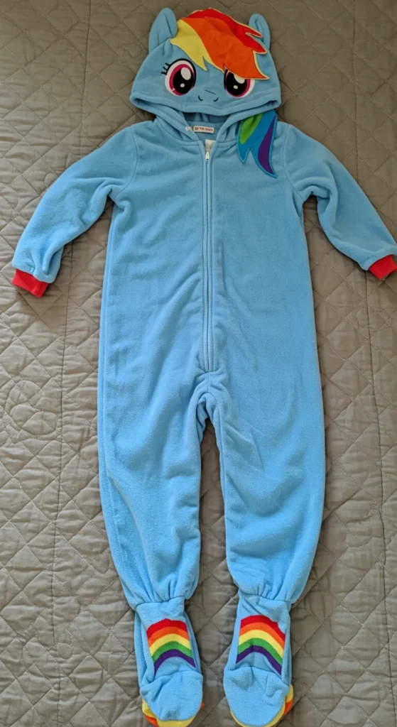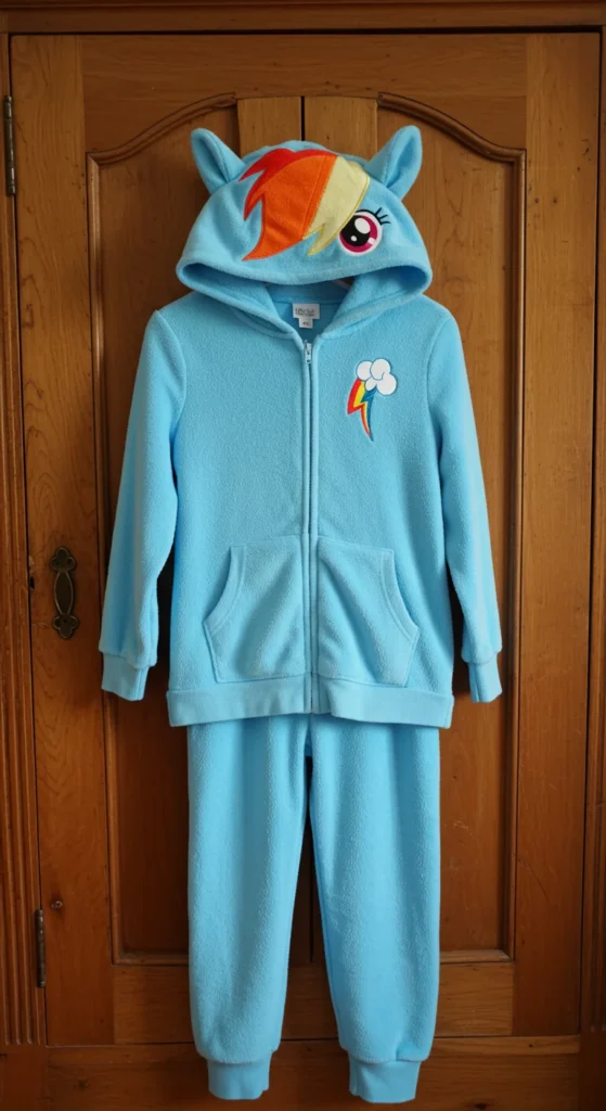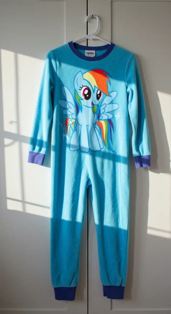 A Rainbow Dash fleece onesie keeps kids warm during colder nights. The material is thick, soft, and perfect for snuggling under the covers. Many designs include a hood with ears or wings, which makes bedtime feel like playtime. Parents often choose these onesies for winter because they replace the need for heavy blankets. Buying during seasonal sales helps cut costs, as fleece pajamas are often discounted before spring.