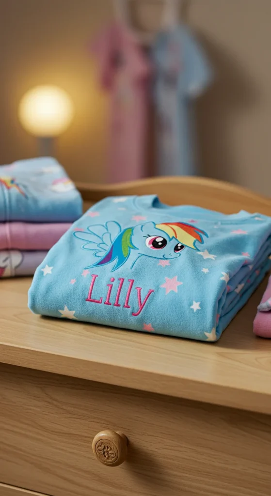 Personalized pajamas make bedtime extra special. Having a child’s name stitched onto the Rainbow Dash design makes them feel unique. Parents can order these online or create DIY versions with iron-on letters. Buying plain sets and customizing them saves money. Kids love wearing something that feels like it was made just for them. Personalized pajamas also make thoughtful gifts. They wash easily and keep their charm even after many uses. This simple touch makes bedtime feel personal and fun.