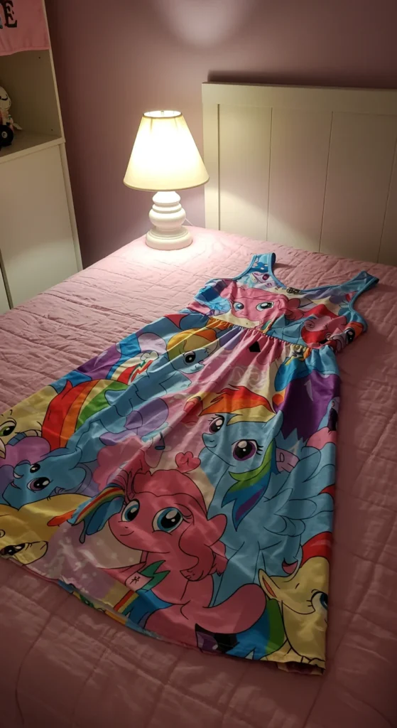 A Rainbow Dash nightdress works well for kids who like lightweight clothing at night. The fabric is usually cotton or polyester blend, making it breathable and comfortable. Nightdresses often have flowing hems that feel fun and magical for children. They are easy to slip on, which helps during busy evenings when you want bedtime to go smoothly. Many budget-friendly options are available online, often sold in packs for extra savings. A simple trick is to buy neutral leggings that can be paired with the nightdress for cooler nights. Parents can also repurpose them as casual home wear during the day. Kids enjoy twirling around in them, which adds an element of fun before bedtime.