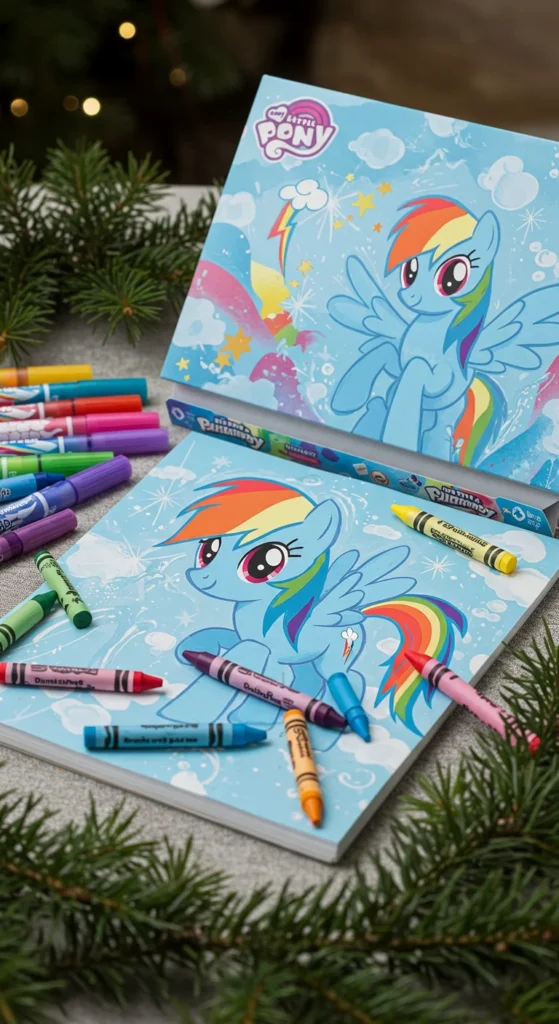 Art sets encourage creativity and quiet time. A Rainbow Dash art kit usually comes with coloring supplies and themed pages. Parents love that it keeps kids busy during gatherings. These sets are budget-friendly and easy to wrap. For a DIY version, put together crayons, markers, and rainbow stickers in a decorated box. Kids enjoy making drawings and crafts inspired by their favorite character. Art sets are thoughtful and practical holiday gifts.
