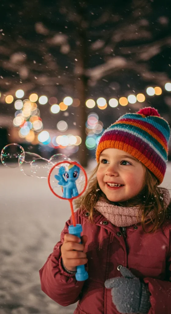 Bubble toys bring fun indoors or outdoors. A Rainbow Dash bubble wand creates streams of bubbles that delight children. Parents appreciate that bubble toys are inexpensive and refillable. For a DIY touch, families can mix dish soap with water to make extra bubble solution. Kids love chasing bubbles with friends or siblings. Bubble wands are cheerful, easy to use, and perfect for holiday play.