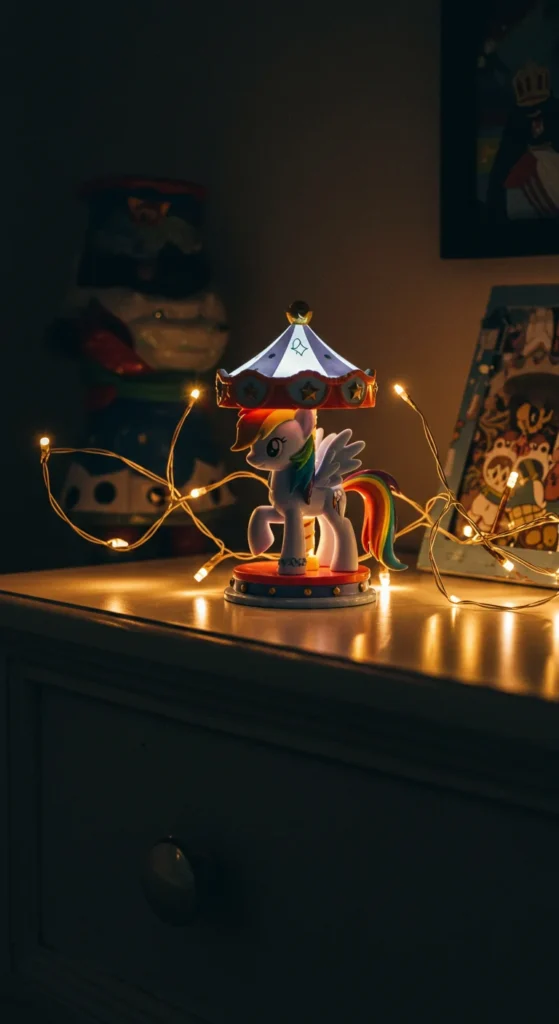 Carousels bring a touch of magic. A Rainbow Dash carousel plays music and spins with bright colors. Kids are fascinated by the moving ponies. Parents appreciate that these toys make sweet keepsakes. While larger ones may be pricey, smaller versions are affordable. A DIY idea is to decorate a plain music box with rainbow stickers. Carousels create a sense of wonder and are beautiful holiday gifts.