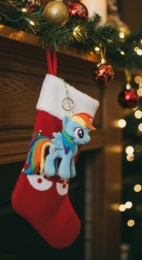Keychains are small yet fun. A Rainbow Dash plush keychain can be clipped to backpacks or jackets. Parents like that these are low-cost gifts that still bring smiles. For a DIY version, sew a tiny felt pony and add a keyring. Kids enjoy carrying their favorite character everywhere. Keychains fit perfectly into stockings and holiday surprise bags.