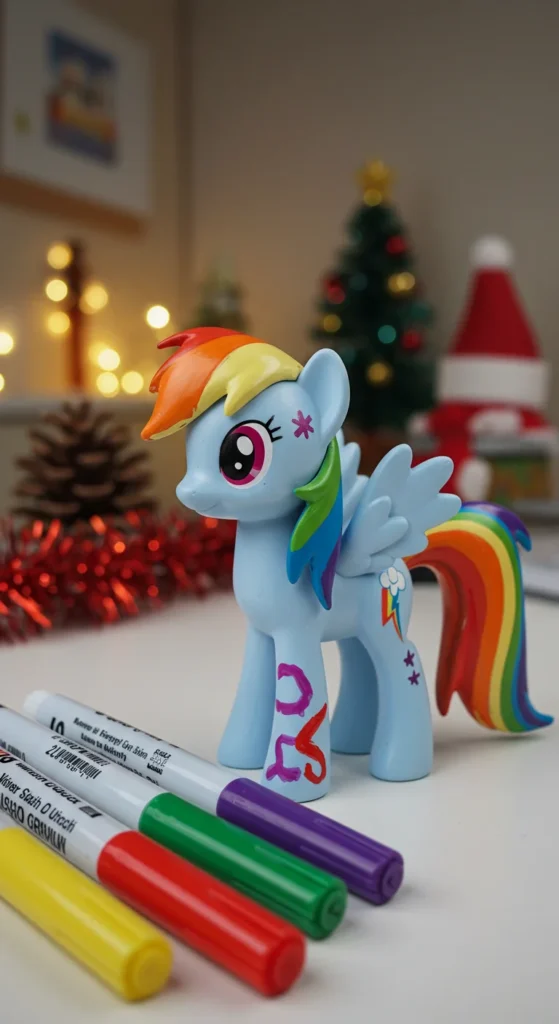 Coloring figurines combine art and play. A Rainbow Dash figurine designed for painting lets kids customize their favorite character. Parents love that it doubles as a toy and a craft. These sets are affordable and often include washable markers. For a low-cost DIY version, buy a plain horse figurine and add rainbow stickers. Kids enjoy seeing their designs come to life. Painted figurines also make cute decorations for shelves. This toy keeps little hands busy and sparks creativity while staying holiday-appropriate.