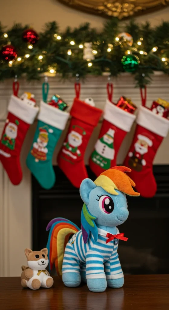 A pajama plush set makes bedtime fun. The Rainbow Dash plush comes dressed in cozy pajamas, making it extra playful. Kids love matching their sleepwear with their toy. Parents can save money by buying a plain plush and sewing a small pajama outfit. These sets also encourage children to go to bed on time. Pajama plushes are soft, cheerful, and bring holiday comfort. They make unique gifts that combine both play and routine.