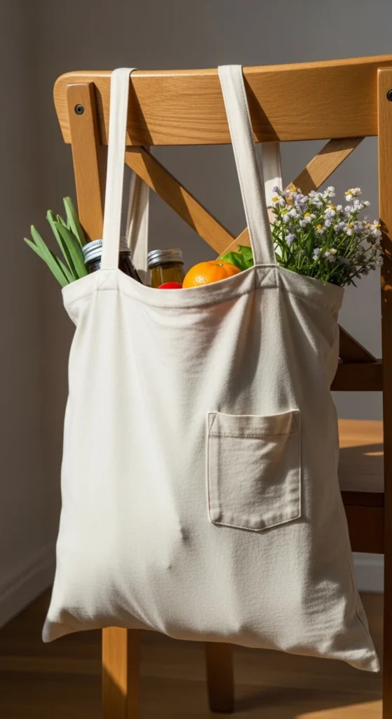 An old T-shirt can quickly become a reusable tote bag, which makes this one of the most practical recycled crafts on the list. Cut off the sleeves, widen the neck opening to make handles, and sew or tie the bottom closed. Thicker cotton shirts work especially well because they hold shape better. This project is ideal for grocery runs, library books, craft supplies, or spare shoes. It is also a smart way to reuse shirts with sentimental prints or colors you still like but no longer wear. If you want a cleaner finish, turn the shirt inside out and sew the edges before flipping it back. No-sew versions also work for casual use. Making your own bag saves money and cuts down on the need for disposable shopping bags. You can make several in different sizes depending on the shirts you have. It is simple, useful, and one of the easiest ways to give old clothing a new daily purpose.