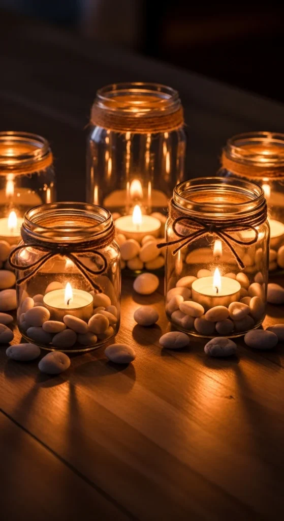 Glass jars are one of the most useful things to save because they can become pretty decor with very little effort. A basic candle holder is easy to make and works for dinner tables, patios, shelves, or festive decor. Clean the jar, remove the label, and dry it fully. You can leave the glass plain for a simple look or decorate it with lace, ribbon, twine, or a light layer of frosted paint. Put a tea light candle inside, or fill the bottom with sand, pebbles, or coffee beans before adding the candle for extra texture. If you want a safer option around children, use battery candles instead. This project is budget friendly because pasta sauce jars, jam jars, and coffee jars work perfectly. A few grouped together can create a cozy mood without much cost. These also make thoughtful handmade gifts when paired with homemade labels or natural decorations like dried orange slices. Reusing jars this way is practical, attractive, and easy for beginners. It is the kind of recycled craft that looks much more expensive than it really is.