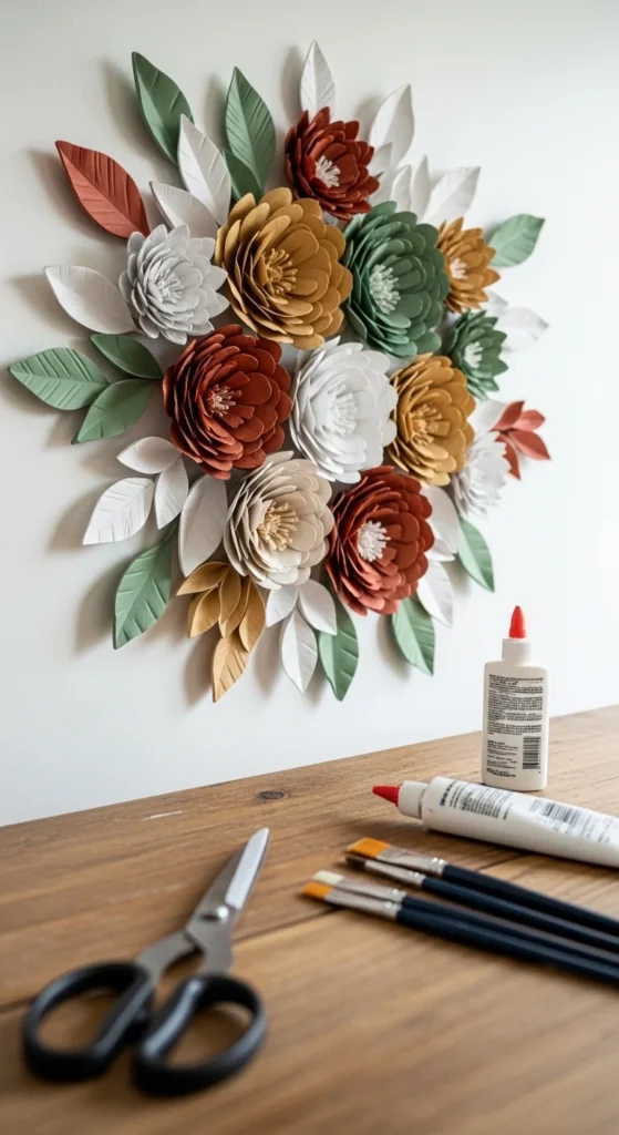 Toilet paper rolls are easy to save and surprisingly fun to shape into simple wall decor. Flatten each roll gently, cut it into even rings, and then pinch or arrange the pieces into petal shapes, leaves, or abstract patterns. Glue the pieces together into one larger design and paint them once dry. Soft black, white, gold, or muted green paint can make the finished piece look much cleaner and more modern. This craft is ideal if you want cheap decor for a hallway, craft room, or child’s bedroom. It uses almost nothing beyond glue, scissors, and paint, which makes it a solid project for tight budgets. You can keep the design small for a subtle accent or make a larger statement piece by saving more rolls over time. It also works well as a group activity because each person can create different shapes and combine them into one artwork. Recycled wall art like this proves that a material most people throw away can still become something decorative, personal, and surprisingly stylish with a little patience and imagination.