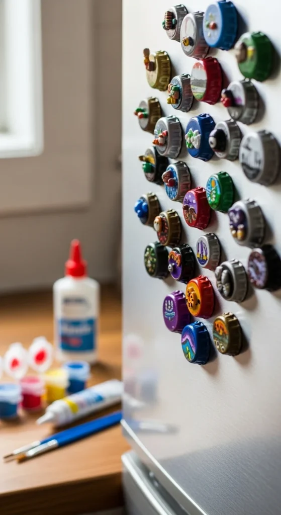 Bottle caps are tiny, durable, and ideal for small crafts that do not take much time. One of the easiest ideas is making magnets for the fridge or a magnetic board. Wash the caps, dry them, and decorate the top with paint, fabric circles, scrapbook paper, mini drawings, or pressed flowers sealed under clear glue. Then attach small magnets to the back. These are fun because each one can look different, and you only need a handful of basic supplies. They are also a nice way to use tiny leftover craft bits that are too small for larger projects. Kids can make bright playful versions, while adults can go for simple patterns or muted shades. This project costs very little compared with store-bought decorative magnets, and the result feels more personal. You can make sets for reminders, shopping lists, or children’s artwork. Bottle cap crafts are a good example of how a very small item can still be reused in a clever way instead of thrown out after one use.