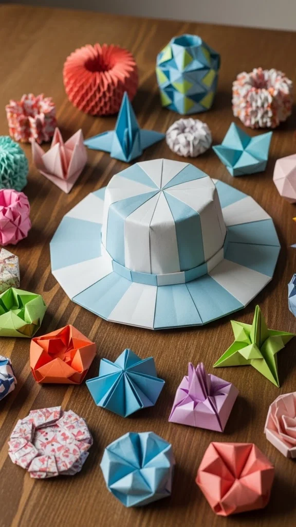 The paper hat is a classic origami project suitable for beginners. Large folds make it easy to follow and complete quickly. Newspaper or colored paper works perfectly, keeping the project inexpensive. Kids especially enjoy wearing and decorating the hats, making it both creative and practical.