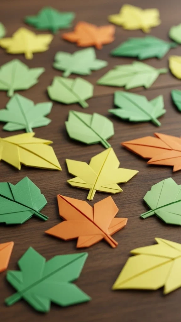 The origami leaf is a simple and relaxing project for beginners. It focuses on straight folds and symmetry, which help improve hand control. Green paper gives a realistic appearance, while patterned paper adds a decorative touch. Several leaves can be folded to create a small seasonal arrangement or table display, making it both fun and practical.