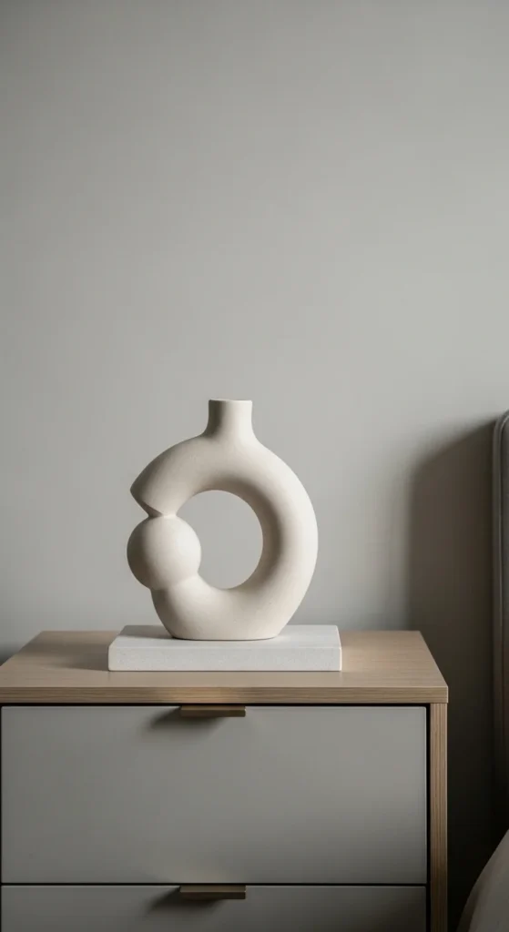Sculptural ceramics act as quiet focal points. One piece is enough. Organic shapes soften sharp edges. Use neutral tones to keep cohesion. Thrift stores often have unique ceramic forms. This adds character without clutter.