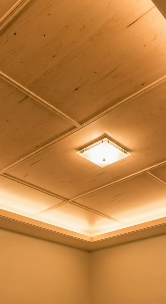 Wood panels add texture overhead and soften sound. Light tones keep the ceiling from feeling heavy. Use panels in one section rather than across the entire ceiling. Peel-and-stick options offer a simpler route. This detail adds depth without furniture.