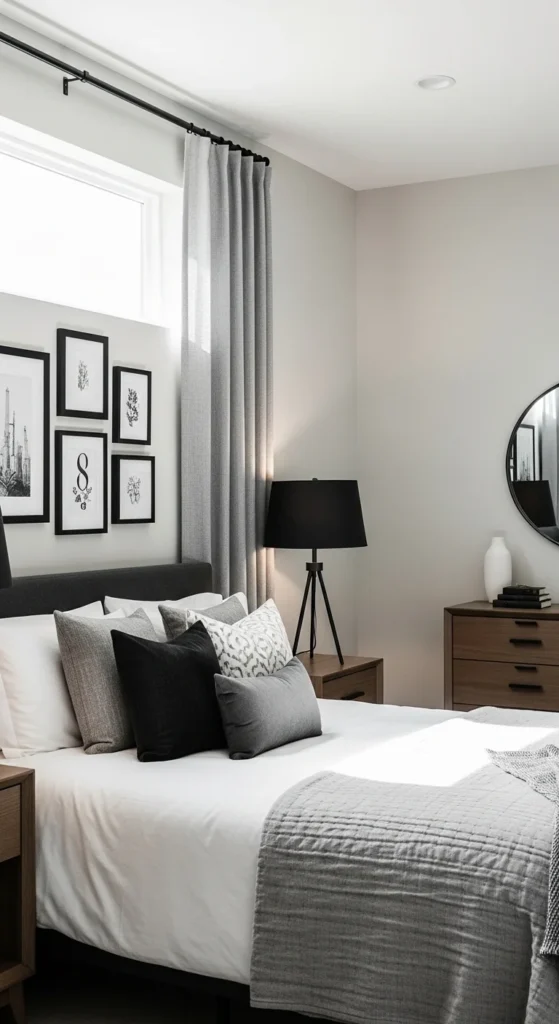 Matte black adds contrast without shine. Use it sparingly through lighting, hardware, or frames. Repeating the finish across a few elements keeps it cohesive. This swap is budget-friendly and impactful. Avoid mixing too many metals. Black works best when paired with whites, greige, or soft taupe.