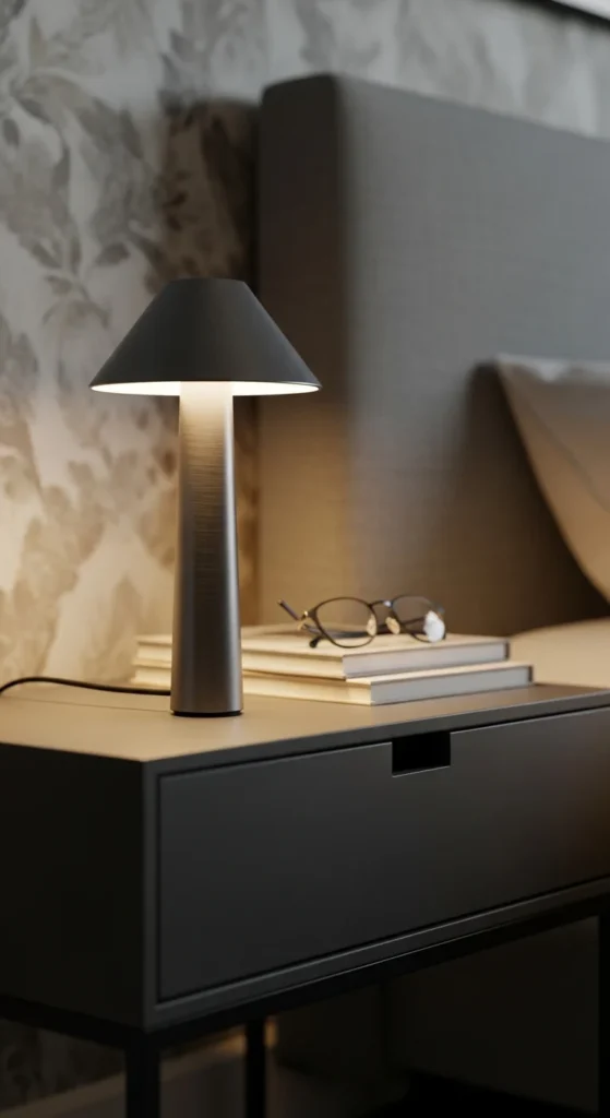 Cordless lamps remove cable clutter. They allow flexible placement and cleaner surfaces. Many rechargeable designs suit modern bedrooms. This small change improves visual order immediately.