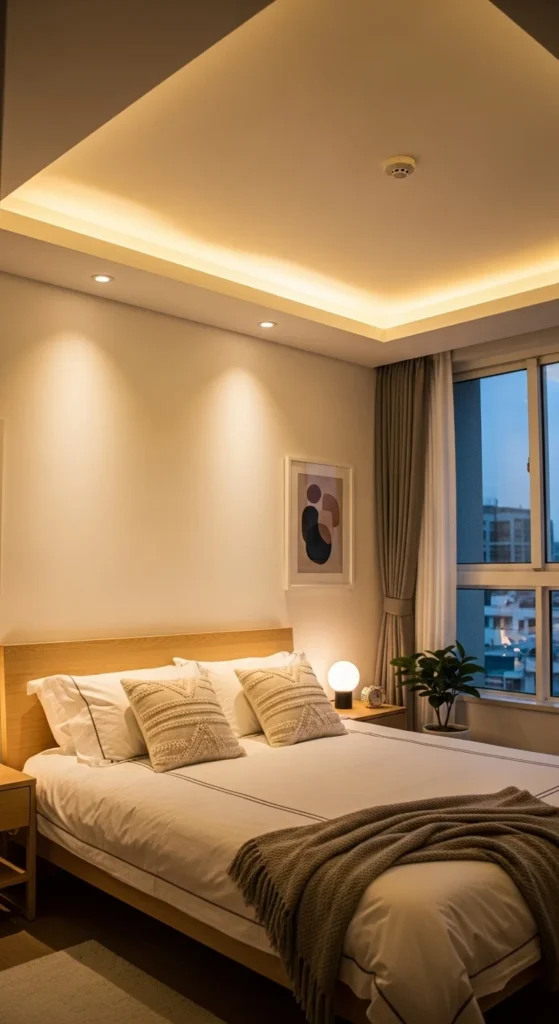 Cove lighting adds a soft glow without visible fixtures. It highlights walls and textures evenly. Plug-in LED strips can recreate this effect affordably. Warm light keeps the room comfortable at night. This detail shapes mood more than decor.