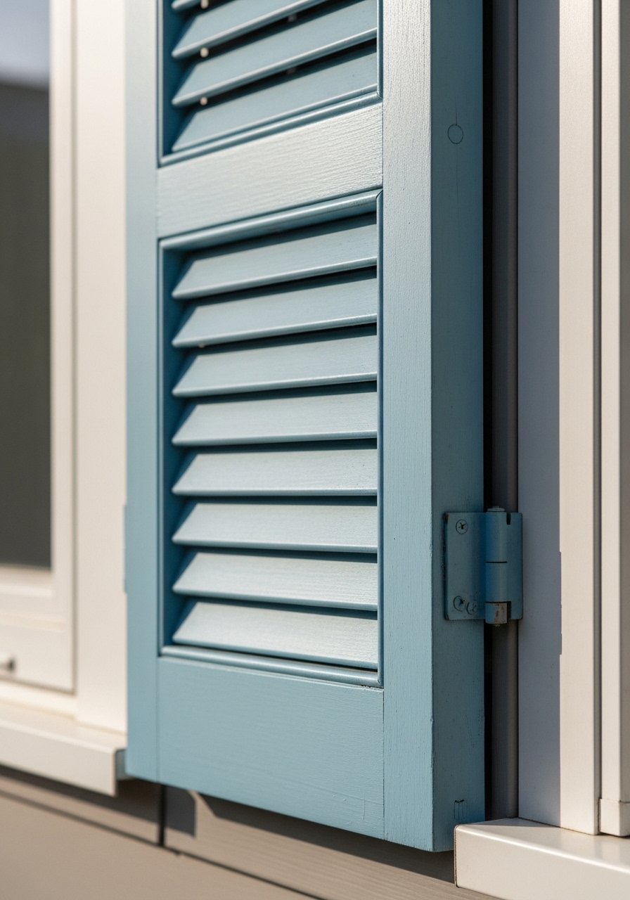 Pastel shutters made my tiny house feel spring-ready year-round. I used a muted aqua; it brightened the facade without feeling juvenile. I painted too-bright once and had to repaint—muted tones are more forgiving.