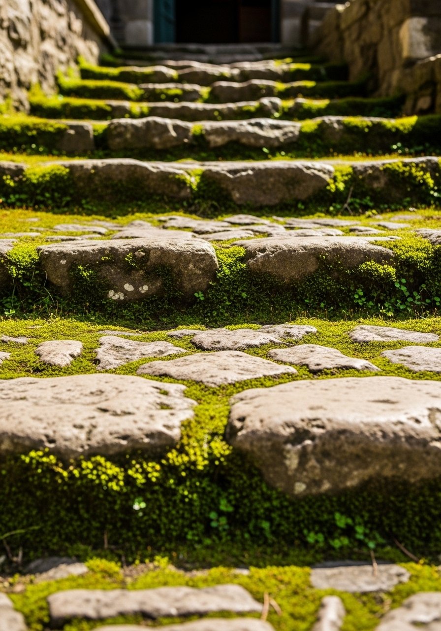 This look reads old and cared-for. Use stones that sit solidly so they don’t wobble underfoot.