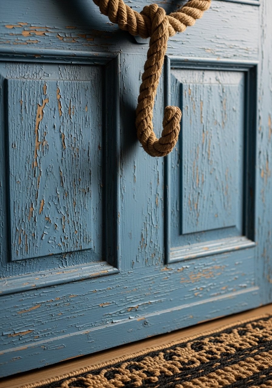 I went coastal with a soft blue door and added rope details. It felt beachy without kitsch. I once used shiny nautical hooks that looked staged—swap for natural fibers.