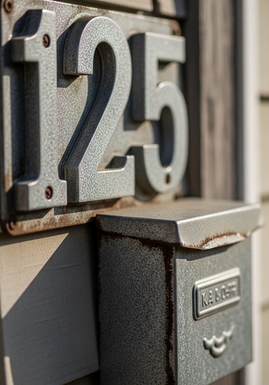 I swapped plastic numbers for aged metal ones. The house read older and more intentional. I ordered ornate numbers then returned them—simplicity worked better.
