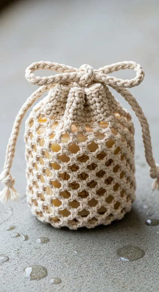 Soap savers are small mesh bags that hold soap bars. They lather well and help reduce waste. This project teaches open stitch patterns. A drawstring closure adds function. Cotton yarn is best for durability. Quick and practical. Good for bathrooms or gifts.