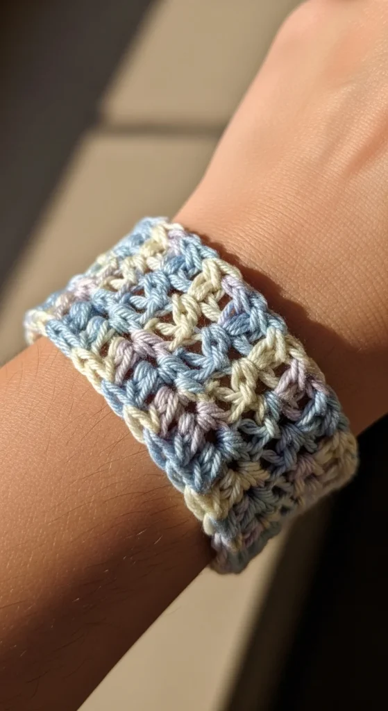 A crochet wristband is a fun and wearable project that helps beginners practice tension and sizing. It’s usually made as a small rectangle that wraps around the wrist and fastens with a button. Working in short rows makes the project feel manageable and quick to finish. Soft yarn gives it a comfortable feel against the skin. You can add simple texture by switching stitches or adding a small decorative button. Measuring your wrist before finishing helps you learn about fit without complicated math. Wristbands also make thoughtful handmade gifts that don’t require much yarn. This project combines practicality with creativity in a beginner-friendly way.