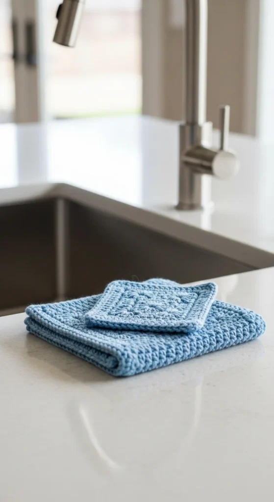 Dishcloths are practical and forgiving, making them perfect for learning. A simple square made with repetitive rows builds confidence quickly. Cotton yarn is ideal because it handles water and washing well. You only need one stitch repeated across rows, which helps muscle memory develop naturally. Small variations in tension won’t affect usefulness. You can experiment with stripe colors using leftover yarn. Finishing with a neat border improves edge consistency. These cloths are reusable and reduce paper towel use. A stack of handmade dishcloths always feels satisfying.
