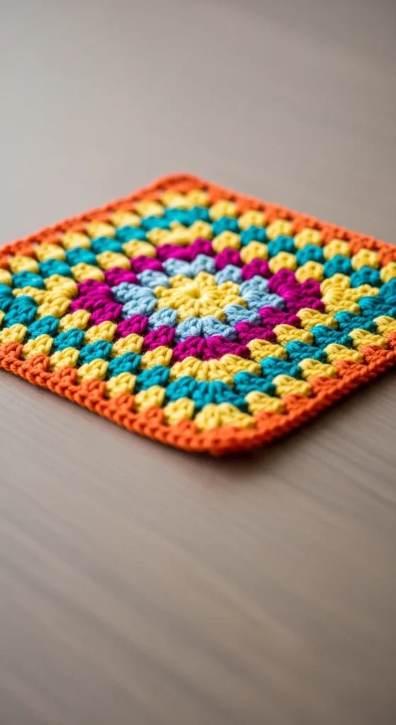 Granny squares teach working in clusters and corners. Each round builds outward, creating a neat square shape. Changing colors between rounds makes the pattern pop. These small squares can later be joined into bigger projects. Even one square works as a coaster or patch. The repetitive pattern is relaxing and easy to memorize. You’ll also learn how corners form naturally. This classic design is a great skill-builder.