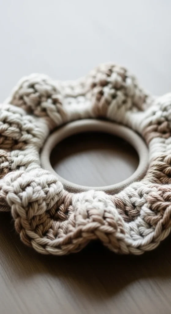 Scrunchies are trendy and beginner-friendly. You crochet around a hair elastic using basic stitches. This teaches working in a round while attaching to an object. Soft yarn makes it gentle on hair. Color choices can match outfits. It works up quickly and uses minimal yarn. Perfect for gifts or personal use. It’s stylish and practical at the same time.