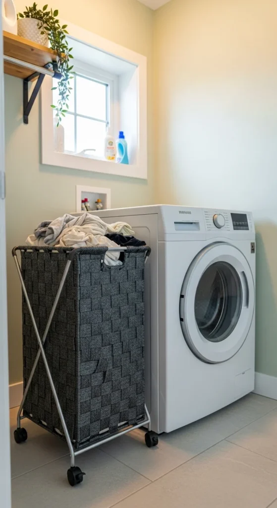 A rolling hamper moves easily from bedroom to laundry area. Choose a narrow style that fits beside machines or inside a closet. Wheels make transport simple and reduce heavy lifting.