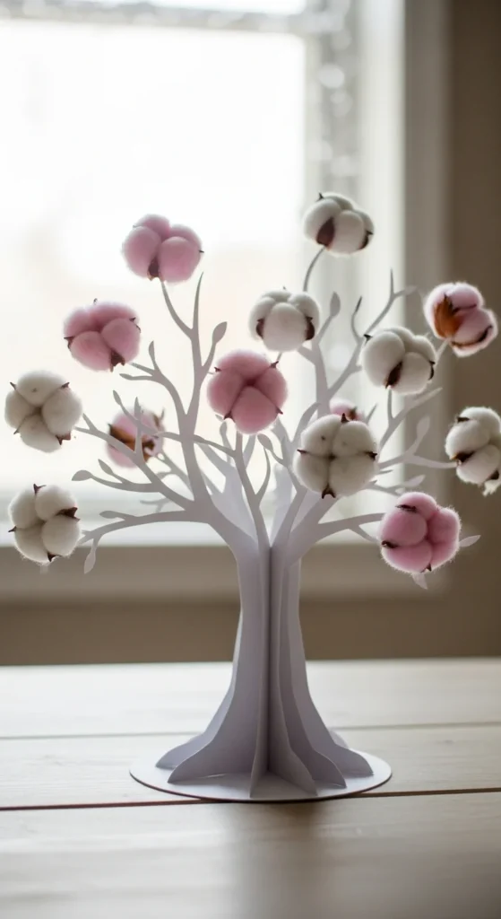 Cotton ball blossom trees are perfect for early spring themes when trees begin to bloom. Draw or print bare tree branches on paper, then dip cotton balls lightly into paint and press them onto the branches to create blossoms. Soft pinks, whites, or pale yellows work well, but mixed colors add personality. The cotton creates texture without needing precision, making this ideal for kids. Supplies stay basic and inexpensive, and drying time is short. Finished artwork works nicely on walls, refrigerators, or bulletin boards. This project focuses more on process than perfection, which keeps it relaxed and enjoyable.